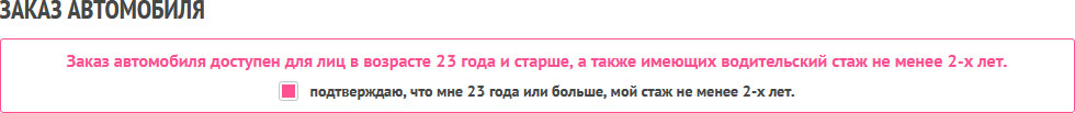 Необходимо подтвердить что вам 23 года или больше, и стаж вождения более 2 лет.